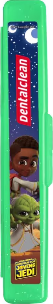 Kit com escova de dente infantil e estojo. Dentalclean Jovens Jedi transforma a higiene bucal em uma aventura divertida para as crianças.