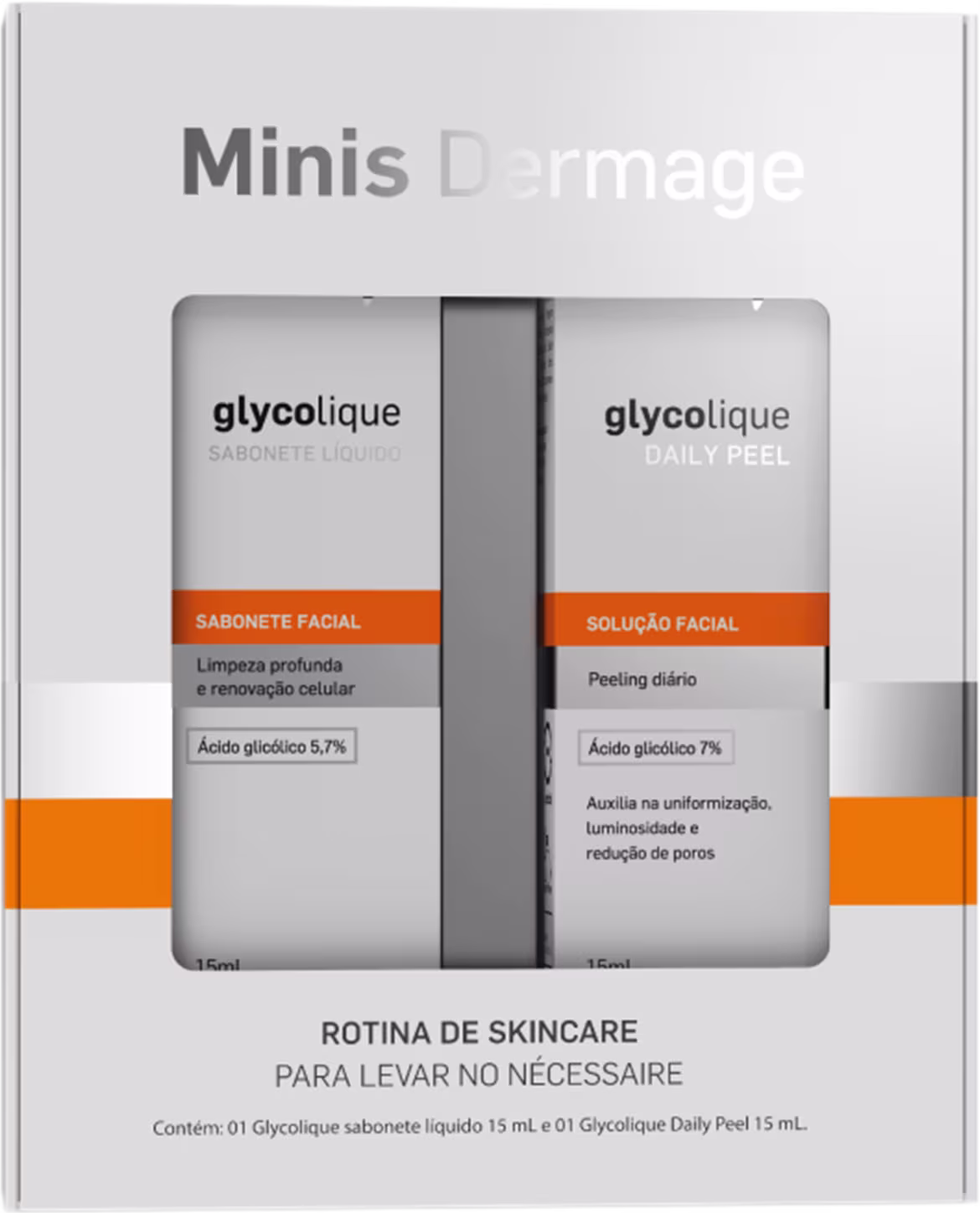 O Kit Dermage Glycolique Daily Peel Minis reúne produtos que promovem a limpeza da derme de modo profundo, além de ajudar na desobstrução dos poros. Também realiza uma renovação celular, potencializando o tratamento clareador do rosto.