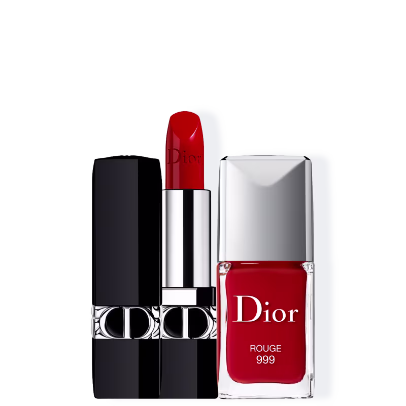 Kit com esmalte cremoso e batom. O Kit Dior Indispensável deixa seus lábios com destaque e unhas com cor de longa duração.