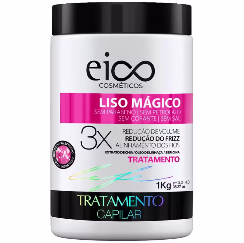 Eico Life Liso Mágico Tratamento - Máscara Capilar: intensifica a macie dos fios, ajuda a manter o volume baixo e livre de frizz.