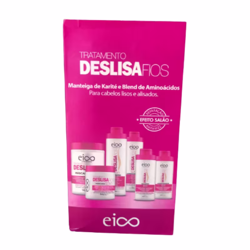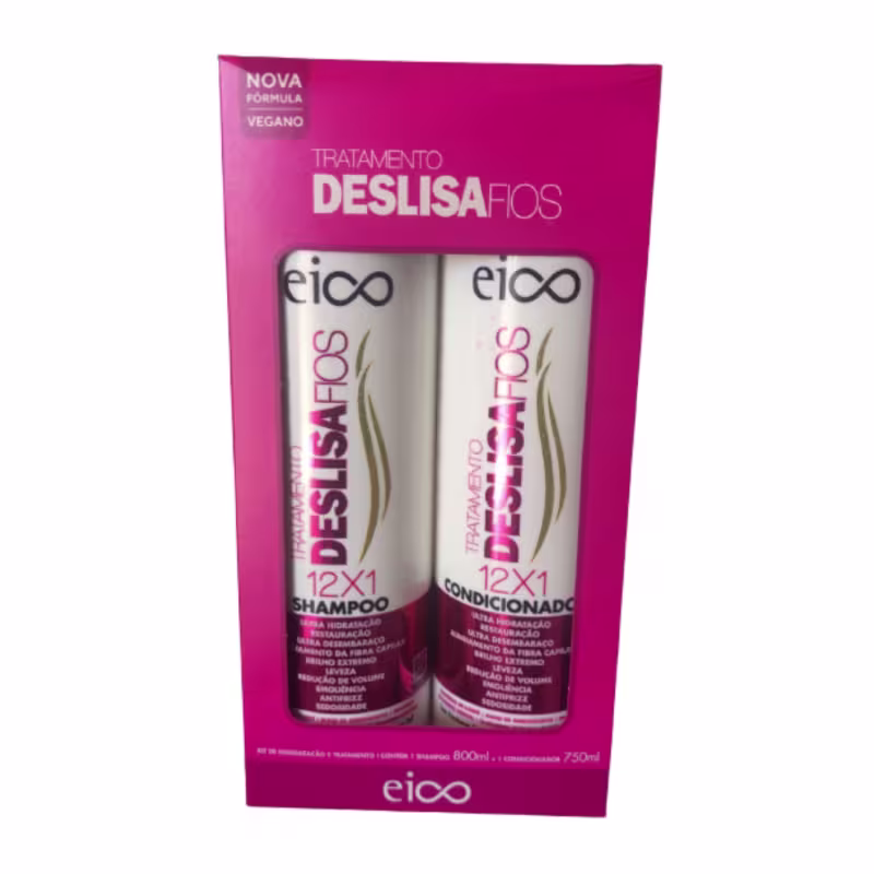 O Kit Eico Tratamento Deslisa Fios Dupla traz fórmula que ajuda a recuperar os danos, deixando os cabelos macios, saudáveis, com balanço e sem frizz.