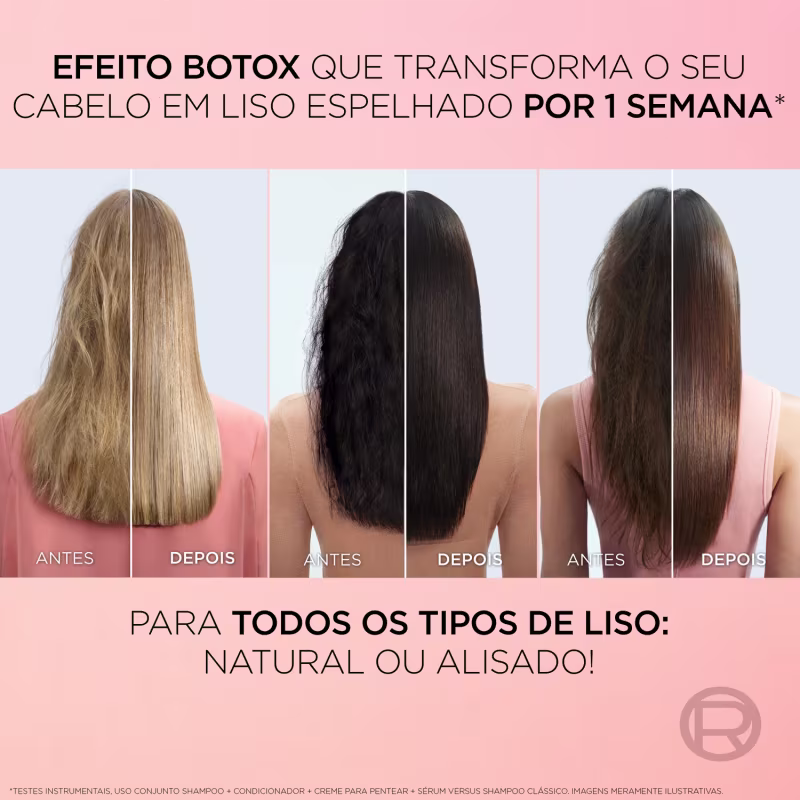 Kit com shampoo, condicionador e máscara. Elseve Liso dos Sonhos Home Trio Mask mantém o liso bem definido por mais tempo, sem frizz.