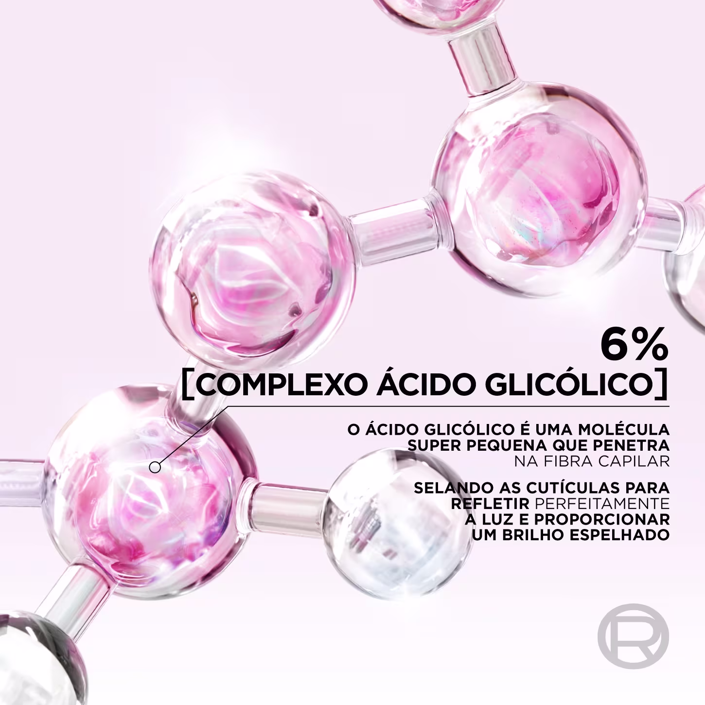 O Kit Elseve Glycolic Gloss apresenta uma fórmula inovadora com pH ácido, enriquecida com 3% do Complexo com Ácido Glicólico para cabelo e filtro UV. Essa composição atua de forma intensa, selando os fios e preenchendo as imperfeições na fibra capilar. Na superfície, realiza a laminação da cutícula, alinhando-a estrategicamente para refletir a luz de maneira exuberante.