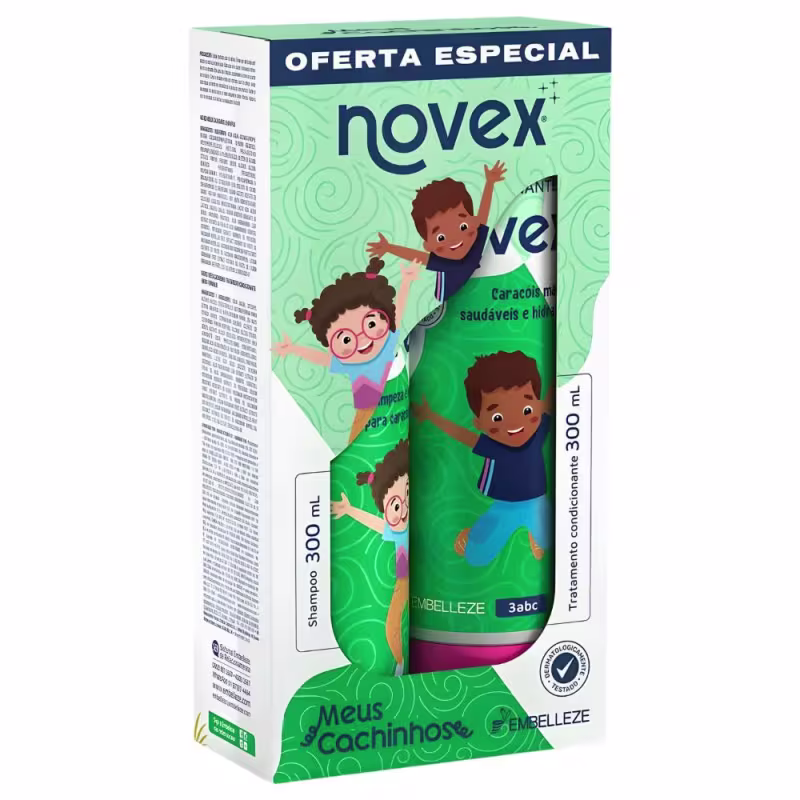 O Kit Embelleze Novex Meus Cachinhos traz fórmula especialmente pensada para cuidar dos cabelos das crianças a partir de 3 anos. Além de testados e aprovados dermatologicamente o Shampoo Hidratante e o Tratamento Condicionante foram exclusivamente criados para as necessidades específicas dos cachinhos.