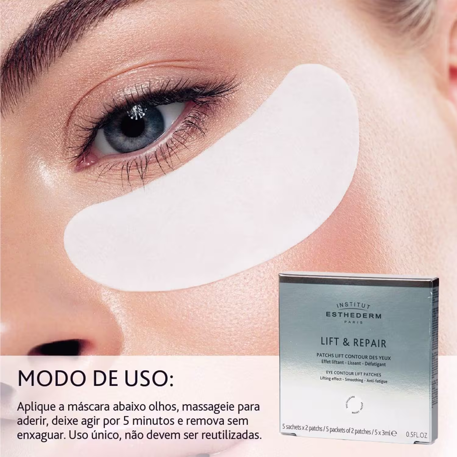Máscara para área dos olhos. Esthederm Lift & Repair reduz visivelmente as olheiras, inchaço, flacidez e sinais de fadiga, com efeito tensor imediato para um olhar mais jovem, descansado e luminoso.