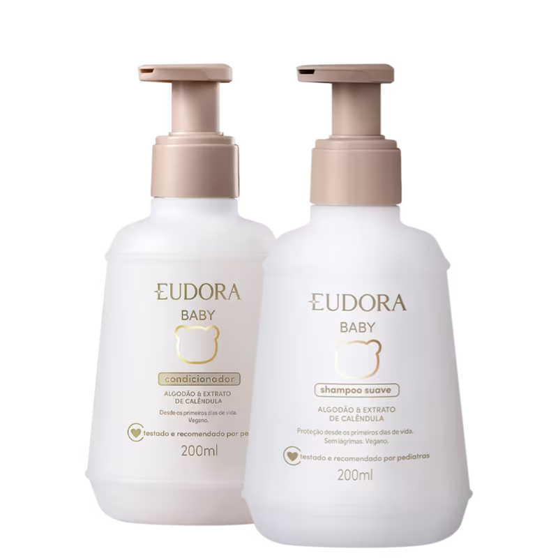 Não sei o CEPKit com shampoo e condicionador para bebês. Eudora Baby é ideal para o cabelo delicado do seu bebê.