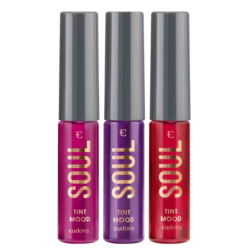 Kit Eudora Soul Tint Mood Trio não pode faltar no nécessaire de quem ama um batom com efeito tint natural, um combo traz cores diferentes para você usar onde quiser!