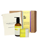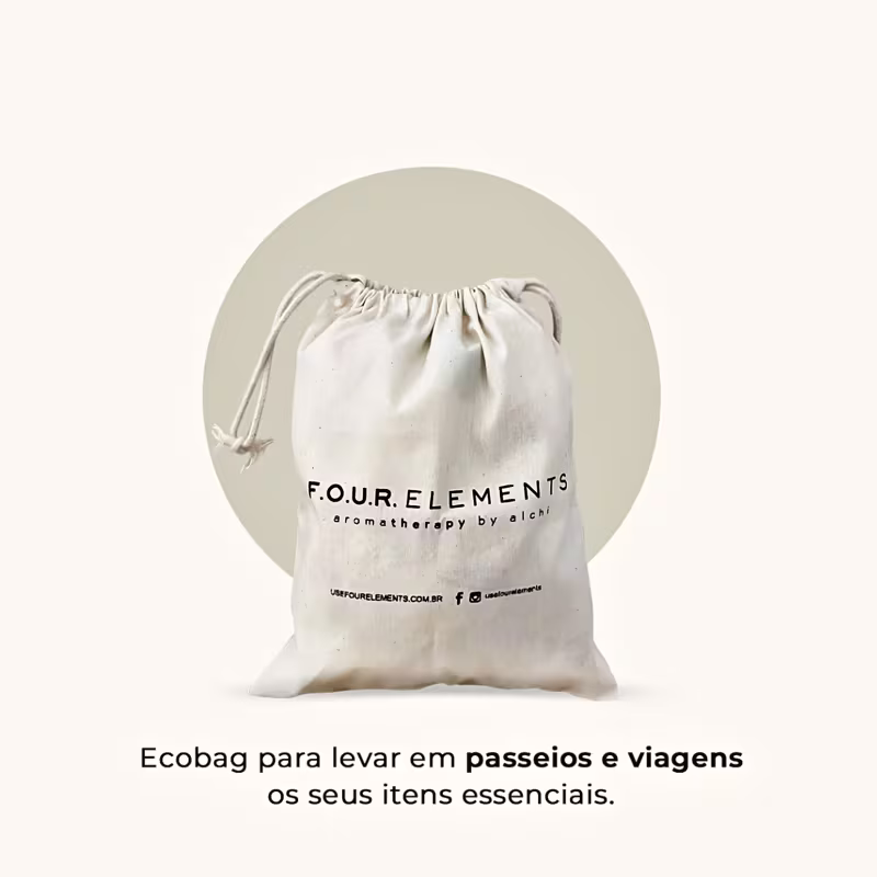 Kit com shampoo sólido, hidratante corporal e mini ecobag. Four Elements Despertar Trio promove uma limpeza profunda dos fios, além de uma hidratação intensa da pele.