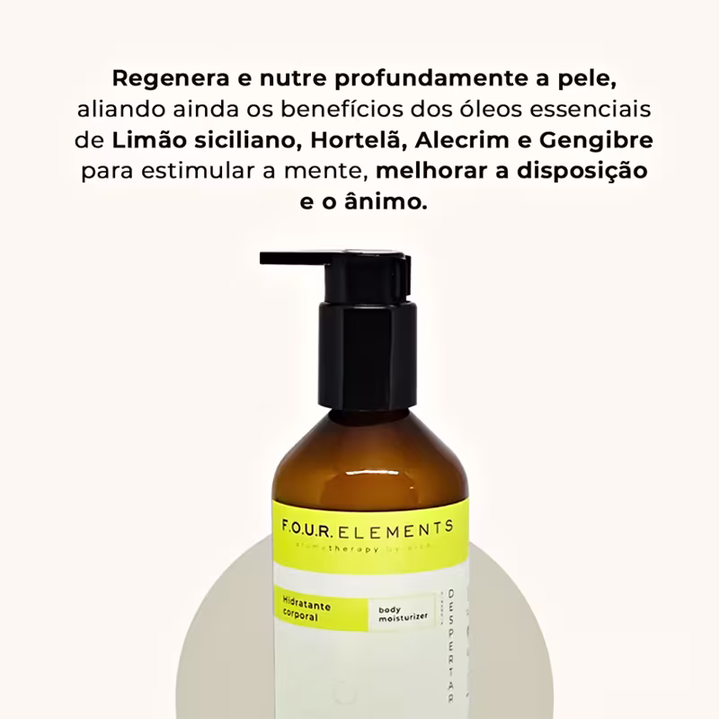 Alchi Four Elements Sinergia Despertar - Hidratante Corporal 200ml: possui ativos nobres, de origem vegetal, que hidratam e protegem a pele, além de ter uma textura de fácil aplicação e absorção, que deixa a pele naturalmente sedosa e perfumada.