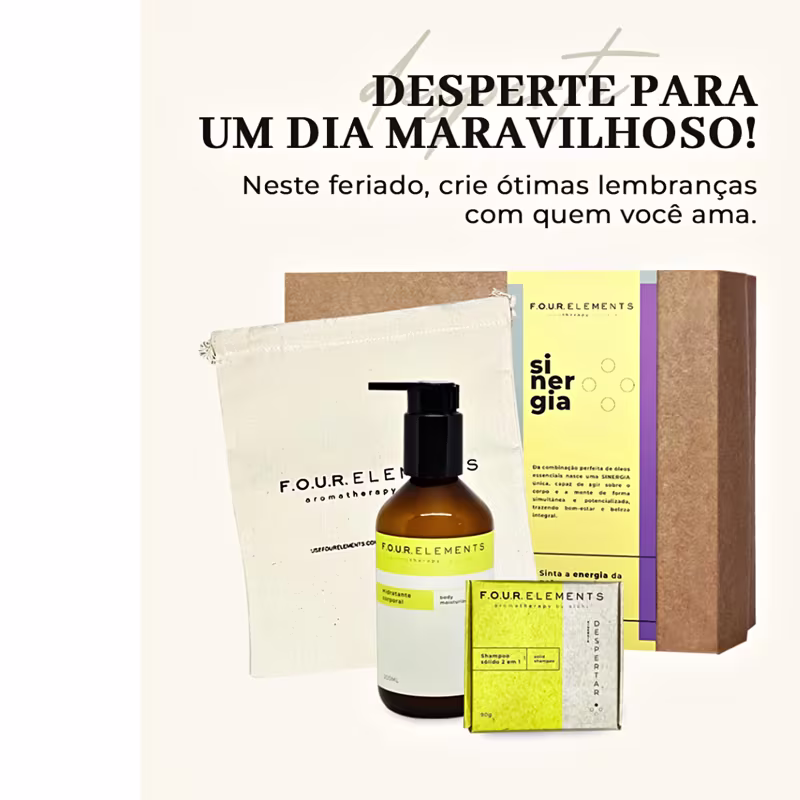 Kit Four Elements Despertar Trio: limpeza nos fios e hidratação intensa na pele. Melhores Kits de Cuidados Capilares e Corporais de Alchi na BLZ. Ver mais ❯