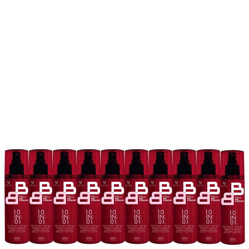 Kit com 10 BB creams para cabelos equilibrados. Full BB Cream 10 In 01 promove aos fios o máximo de reparação e tratamento. Conquiste cabelos hidratados e com brilho realçado, graças a suas propriedades nutritivas e antioxidantes que revitalizam e rejuvenescem, deixando os fios soltos, macios e flexíveis.