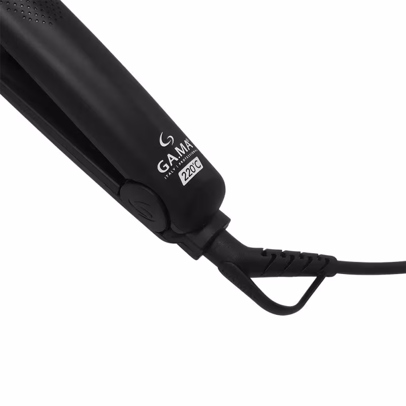 GA.MA Italy Gold Ion - Chapinha: combina a tecnologia Essential Oil, enriquecida com óleo de Argan, para oferecer hidratação, nutrição e proteção aos fios, combatendo o envelhecimento e os danos causados pelo calor. Com a tecnologia 3D Therapy, ela emite íons negativos que restauram a estrutura capilar de dentro para fora, selando a cutícula e proporcionando cabelos sem frizz, mais brilhantes e revitalizados. Alcançando até 220°C/430°F, essa prancha é ideal para uso diário, seja para alisar ou criar cachos, com um design compacto, leve e ergonômico, além de um cabo giratório que facilita o manuseio.