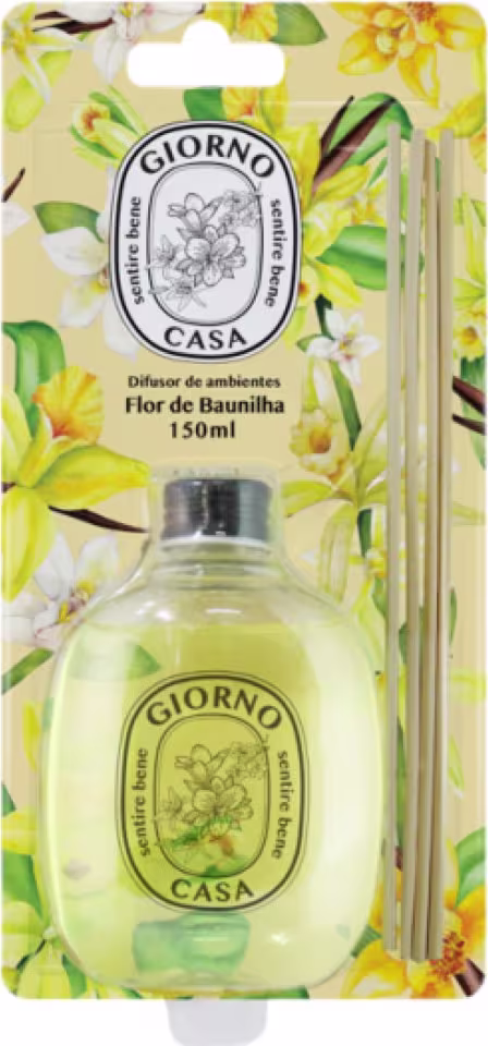 Giorno Casa Sentire Bene Flor de Baunilha - Difusor de Ambientes 150ml: possui uma saída iluminada de Limão Siciliano, notas de Amêndoas e Anis, com um coração de Jasmim, Rosas e Macarrons. Com fundo sofisticado de notas Ambaradas de Baunilha, trazendo um toque delicioso de Gourmand a criação.