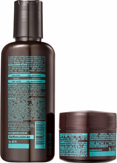 Kit de cuidados para a barba. Kit Go Man Fresh Shampoo e Balm mantém os pelos livres de impurezas, bem hidratados e bonitos. Impede o ressecamento e também ajuda a cuidar da pele do rosto.