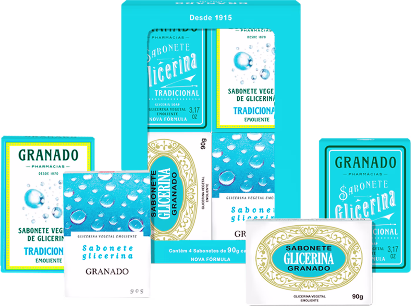 Kit com sabonetes em barra para todos os tipos de pele. Granado Glicerina Tradicional limpa gentilmente com sua composição vegana.
