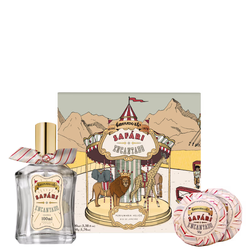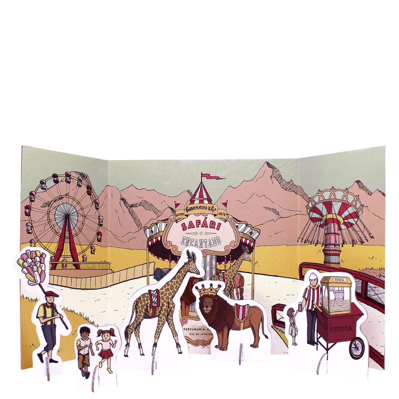 Inspirado no universo lúdico e vintage das crianças, Kit Granado Safári Encantado celebra os tradicionais parques de diversão. Ideal para todas as idades, inclusive para bebês, o kit deixa a pele limpa e perfumada. Além disso, vem com um cenário com personagens que podem ser destacados para a criança brincar. Perfeito para presentear.