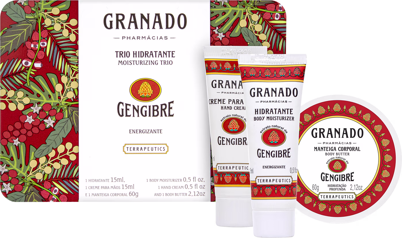 O Kit Granado Trio Energizante Gengibre traz as propriedades energizantes do gengibre, além de deixar a pele com toque aveludada, extremamente macia!