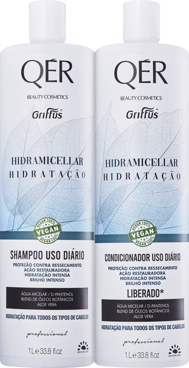 Kit de tratamento para todos os tipos de cabelos. Griffus QÉR Beauty Cosmetics Hidramicellar restaura a hidratação e protege contra o ressecamento.