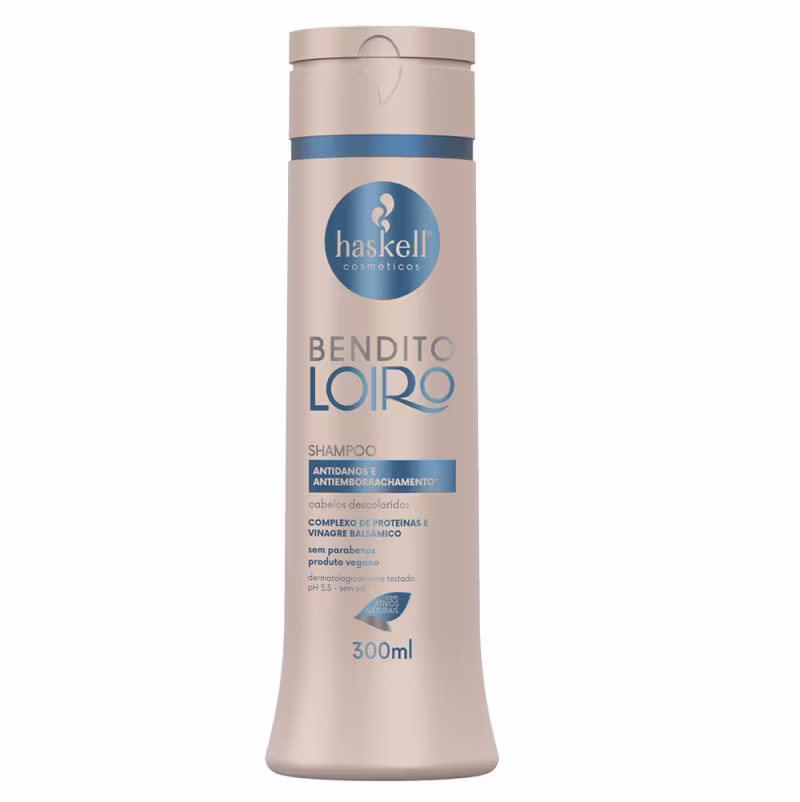Haskell Bendito Loiro - Shampoo 300ml: possui pH equilibrado e evita a alta rigidez característica de shampoo. Prepara o cabelo para o tratamento intensivo.