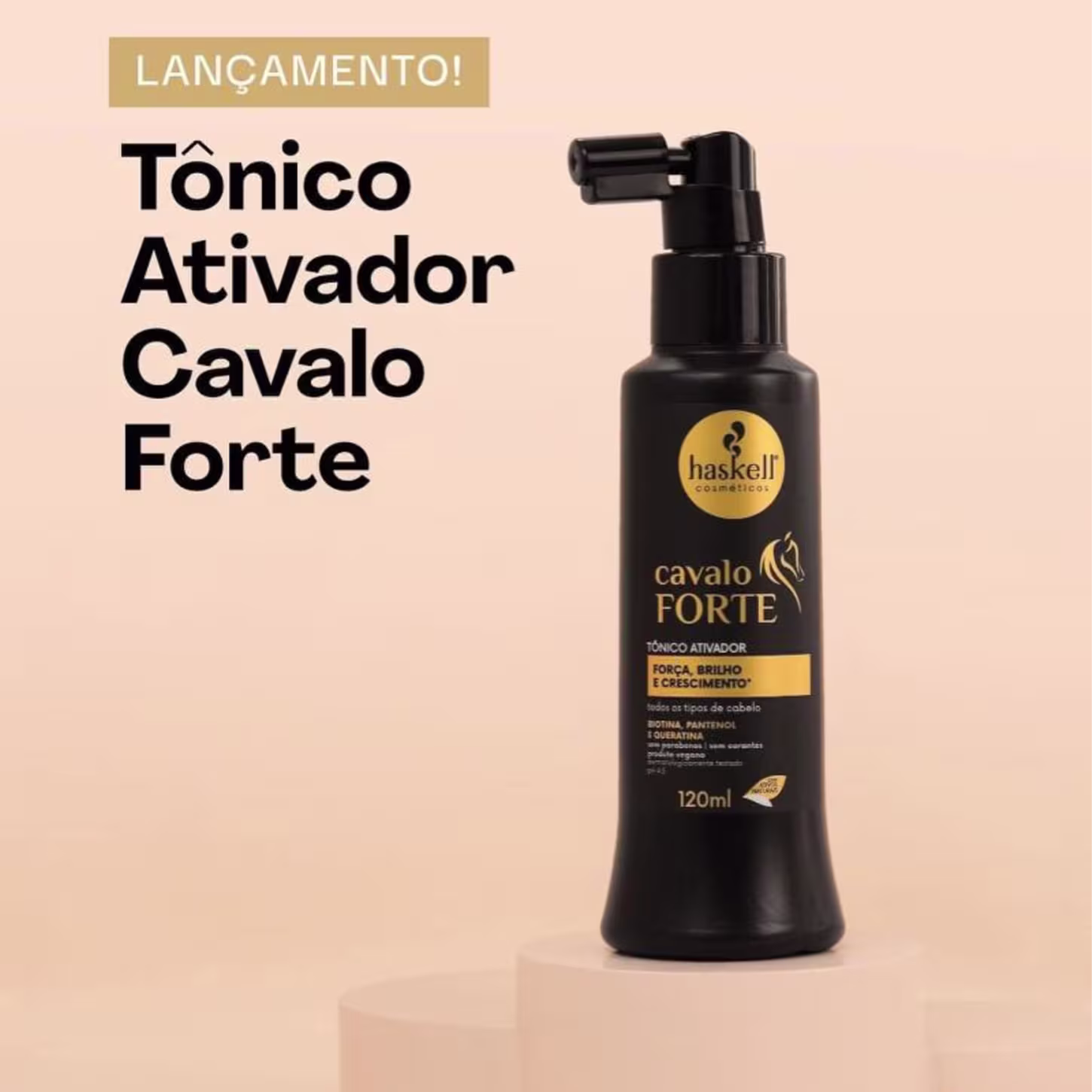 Haskell Cavalo Forte - Tônico Capilar 120ml: estimula o couro cabeludo e auxilia no crescimento dos cabelos, tornando os fios mais resistentes e saudáveis desde a raiz.