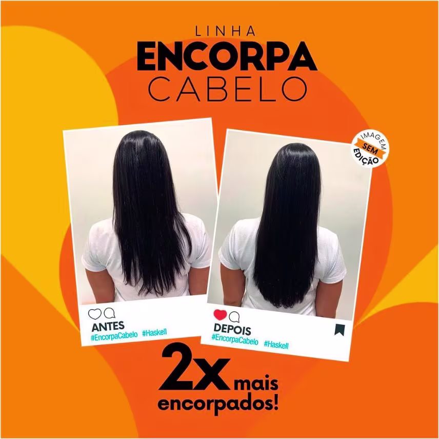 Kit de tratamento para cabelos finos e ralos. Haskell Encorpa Cabelo, desenvolvido para aumentar a densidade e espessura dos fios.