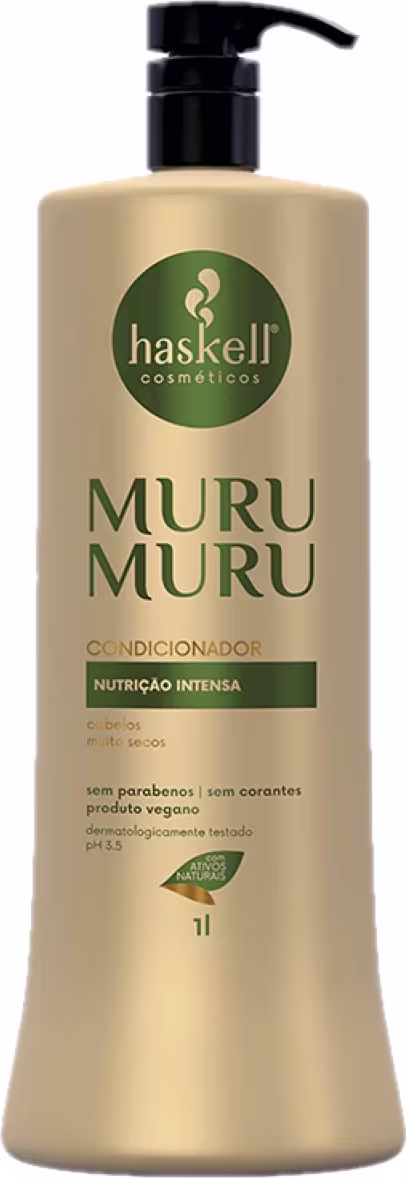 Haskell Murumuru – Condicionador 1L: promove o selamento das cutículas, além de condicionar os cabelos, deixando os fios macios e nutridos. Penetra profundamente na fibra para reparar possíveis danos causados pelo ressecamento e devolver todo o toque macio.