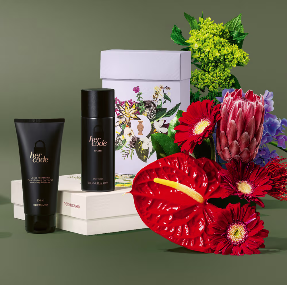 Não sei o CEPO Her Code Splash o Boticário Presente Dia Das Mães une a loção corporal ao body splash dessa linha ritual de cuidado que intensifica esse efeito licoroso e instigante na pele. Encontre nesta rotina a combinação marcante de Frutas Vermelhas, Jasmim e Sândalo, que proporciona momentos de mistério e sofisticação. Todos os itens vêm em uma caixa florida que evidencia que o grande amor de mãe é algo transcendente e para retribuir, não seria apenas com uma flor, mas com um suntuoso bouquet: