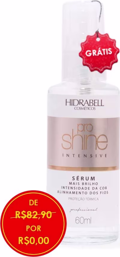 Hidrabell Pro Shine - Sérum Capilar 60ml: oferece um tratamento ainda mais potente e concentrado, revitalizando a cor dos fios, ao mesmo tempo hidrata e condiciona.