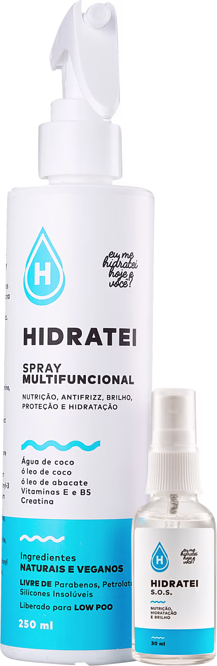 Hidratei Spray Multifuncional - Leave-in 250ml: deixa os fios intensamente hidratados, nutridos e protegidos.