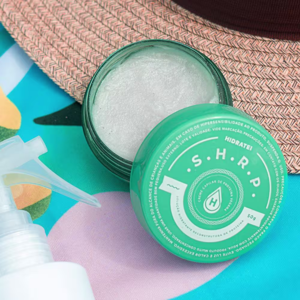 Hidratei SHRP - Creme Hidratante Capilar 50g: possui fórmula enriquecida com óleos vegetais que nutrem profundamente e proporcionam brilho aos fios.