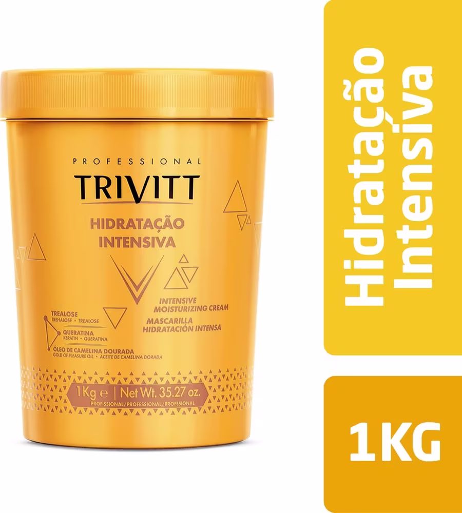 Itallian Hairtech Professional Trivitt Hidratação Intensiva - Máscara Capilar 1kg: penetra na parte interna da fibra capilar, fortalecendo os fios contra a quebra através dos seus ingredientes com alto poder de hidratação. Sua fórmula sela as cutícula, auxiliando na reposição da hidratação perdida, deixando o cabelo com brilho, resistente e condicionado.