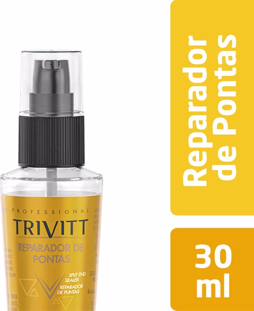 Itallian Hairtech Professional Trivitt Style - Reparador De Pontas 30ml: forma uma película protetora dos fios, absorvendo os nutrientes e retendo água, para um cabelo muito mais macio. Sua ação regeneradora evita a formação e aparecimento das temidas pontas duplas, que fazem o cabelo ficar áspero, poroso e super fragilizado e sem brilho. Além disso, age como protetor térmico e solar, evitando os danos da radiação UVB. Não deixa o cabelo oleoso.