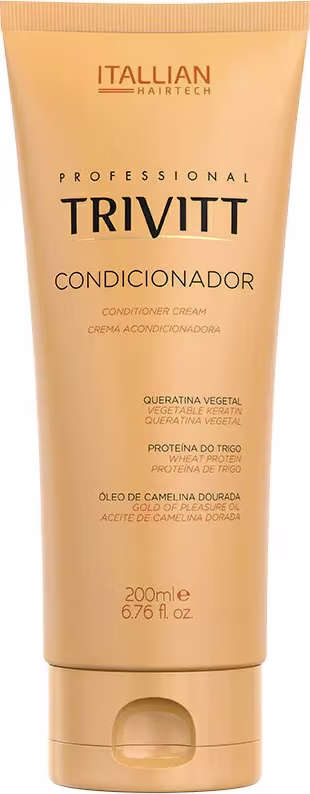 Itallian Hairtech Trivitt - Condicionador 200ml: possui formulação especialmente desenvolvida para reparar as partes danificadas dos fios, criando uma película protetora que controla o frizz, reduz o volume e protege do ressecamento. Seu uso facilita o desembaraçar dos fios, deixando seu cabelo maleável e sedoso.