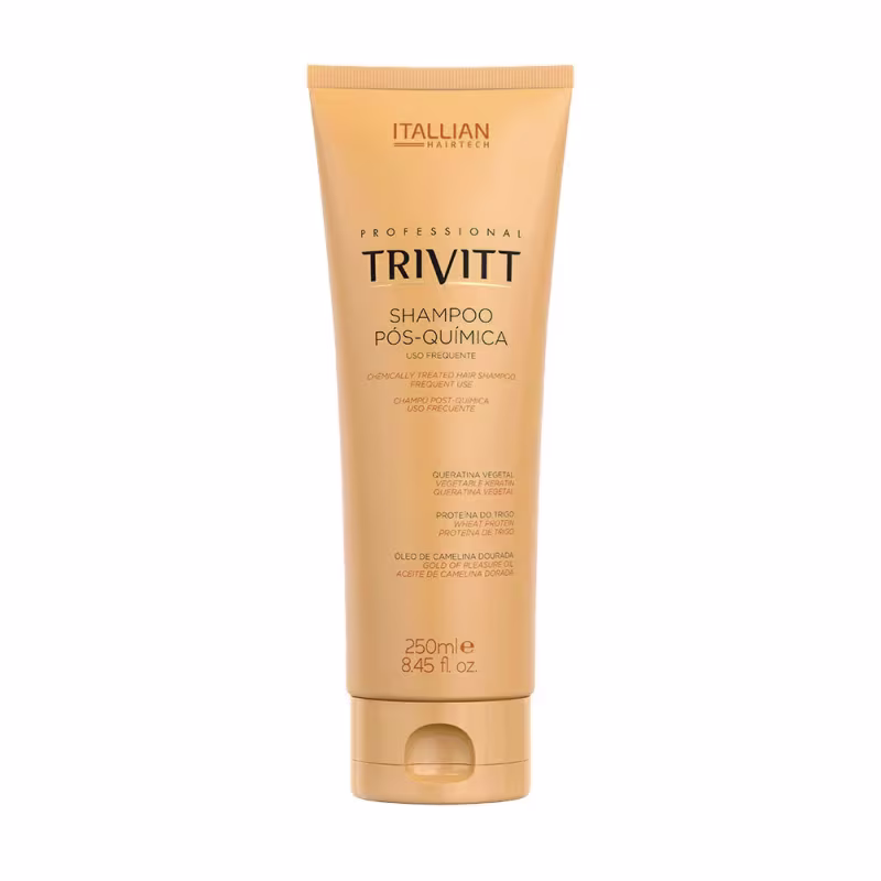 Itallian Hairtech Trivitt Pós-Química - Shampoo 250ml: possui ativos e propriedades que cuidam diretamente as fragilidades e necessidades dos cabelos quimicamente tratados. Seu uso devolve aos fios a hidratação, brilho e elasticidade.