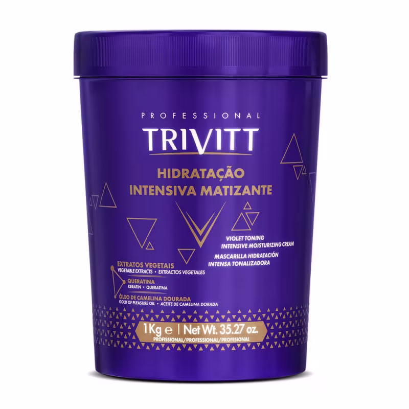 Itallian Trivitt Hidratação Intensiva Matizante - Máscara Capilar 1Kg: é indicada para todos os tipos de cabelo, incluindo lisos, ondulados, cacheados, crespos, cabelos quimicamente tratados e ressecados. Sua fórmula poderosa fortalece os fios, penetrando profundamente nas fibras capilares para prevenir a quebra e proporcionar uma hidratação duradoura.