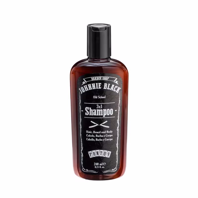 Johnnie Black Old School 3x1 - Shampoo 240ml: limpa sem comprometer a hidratação da pele e dos fios. Sua fórmula suave é versátil, adaptando-se para uso no cabelo, barba e corpo. Com um equilibrado pH 5.0, ele revigora todos os tipos de pele, cabelos e barbas, entregando uma experiência anti-stress com o perfume refrescante de Verbena. Livre de parabenos e cruelty free, é uma escolha consciente e eficaz para sua rotina de cuidados.