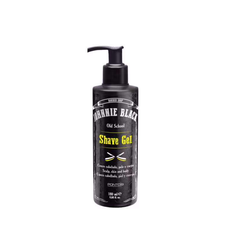 Johnnie Black Shave Gel - Gel de barbear 180ml: desenhe sua barba com suavidade e frescor: O Shave Gel da Johnnie Black é uma ferramenta para esculpir a barba com perfeição. Sua fórmula translúcida permite um desenho preciso, enquanto proporciona uma sensação fresca única. Desfrute de um barbear rente e suave, graças à combinação exclusiva de Óleo de Absyntho e Pantenol, que não apenas acalma a pele, mas também auxilia na recuperação pós-barbear, mantendo a hidratação e equilibrando a oleosidade. Com um pH de 4.0 e o envolvente perfume de Verdana, esta experiência anti-stress redefine o ato de barbear.