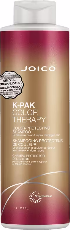Joico K-PAK Color Therapy Smart Release - Shampoo 1L: limpa suavemente, auxilia na proteção da cor e restaura os fios por completo, desde a raiz até as pontas.