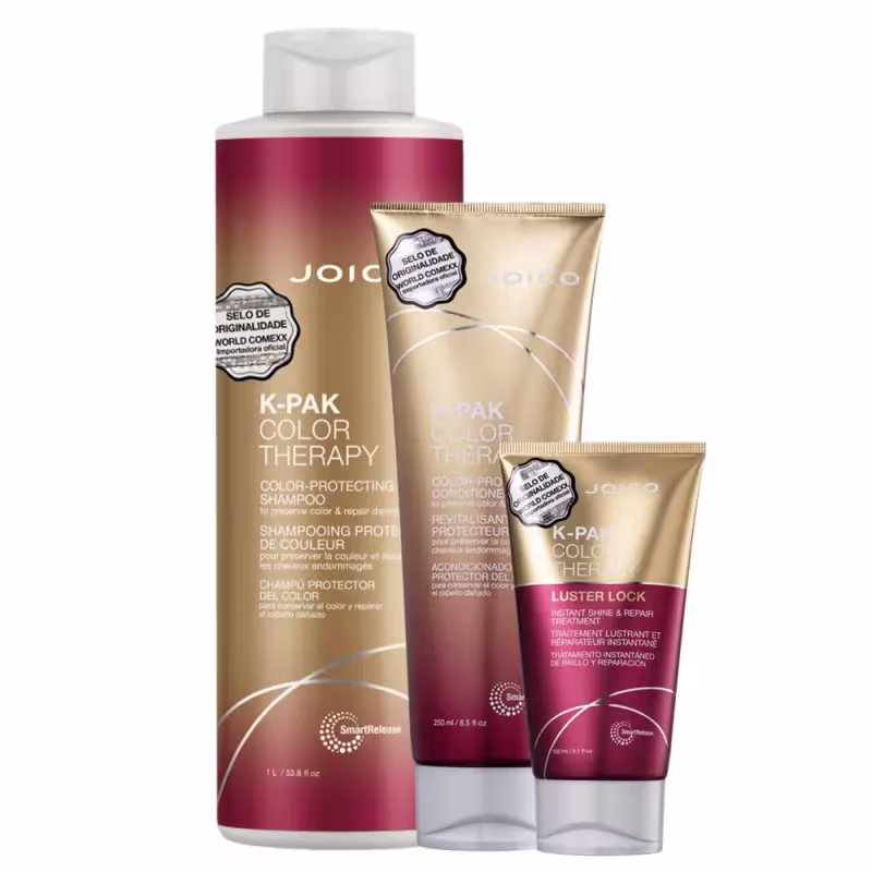 Kit de tratamento para cabelos coloridos. Kit Joico K-PAK Color Therapy Essential cuidado intensivo para uma cor vibrante, protegida e duradoura.