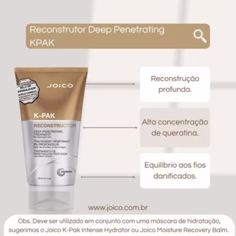 O Kit Joico K-Pak Deep Penetrating Máscara Capilar fortalece e reconstrói profundamente e instantaneamente, restaurando a saúde dos fios e melhorando a condição dos cabelos como um todo.