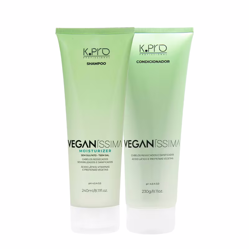 Não sei o CEPKit com shampoo e condicionador para cabelos ressecados. K. Pro Duo Power Veganíssima Moisturizer proporciona intensa nutrição e hidratação aos fios.