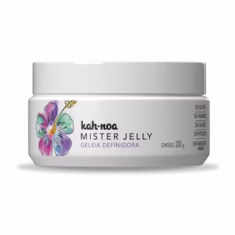 O Kah-Noa Mister Jelly é uma geléia definidora de cachos feita de extratos vegetais. Estilizador natural, livre de silicones insolúveis, petrolatos e parafinas. Cachos definidos, brilhosos e sem frizz o dia todo, com o mínimo de produto. Combine com o Kah-noa Leave-in Super Light 300g hidratação para cabelos cacheados + sustentação.