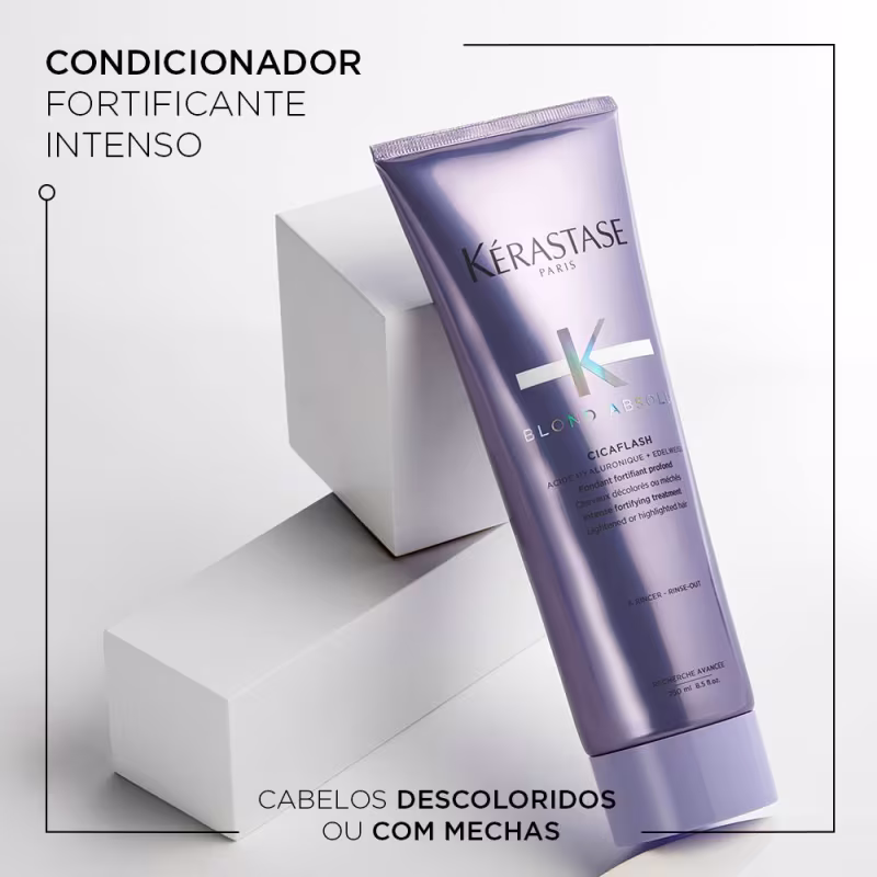 Kérastase Blond Absolu Cicaflash - Condicionador 250ml: combina tratamentos de reconstrução e nutrição intensivas à leveza de um condicionador. Garante uma fibra uniforme, sem porosidade ou quebras, além do toque macio único.