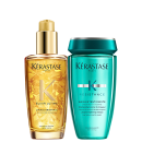 Kit com óleo e shampoo para cabelos danificados e de crescimento lento. Kérastase Elixir Origilane Résistance dá brilho, sedosidade e fortalece.