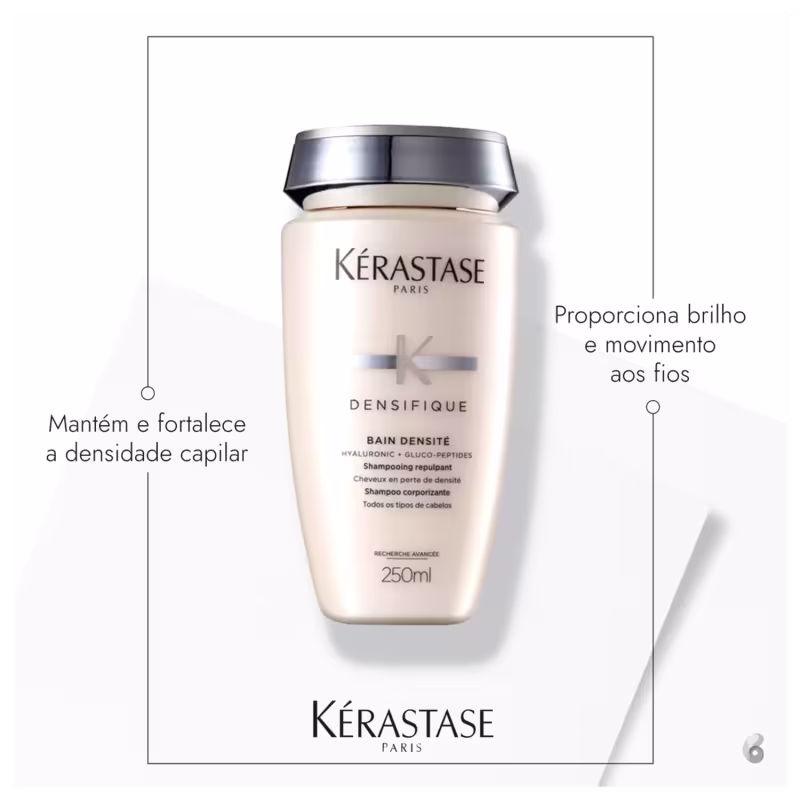 O Kit Kérastase Elixir Originale Densifique limpa os fios, proporciona brilho, flexibilidade e movimento ao cabelo. Sua aplicação aumenta a sensação de fios mais volumosos, densos e resistentes. A fórmula contida no kit protege os fios contra o calor de até 230°C, reduzindo as pontas duplas e proporcionando mais maleabilidade e alinhamento.