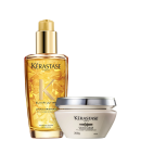 Kit com óleo e máscara capilar para cabelos ralos ou com afinamento. Kérastase Elixir Originale Mask Densifique garante fios saudáveis, promove brilho e maciez.