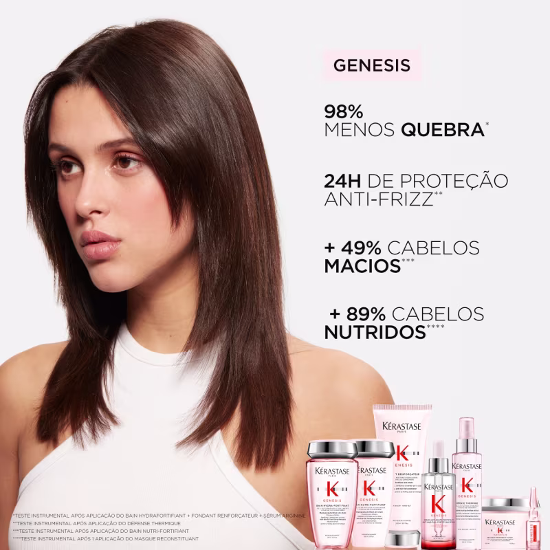 O Kit Kérastase Genesis Power Refil Duo atua para fortalecer o cabelo da raiz às pontas, evitando a queda pela quebra. Cada aplicação confere uma dose de nutrição que transforma a textura e aumenta a resistência dos fios. Ao mesmo tempo, ajuda a manter o frizz sob controle, garantindo um acabamento alinhado e suave.