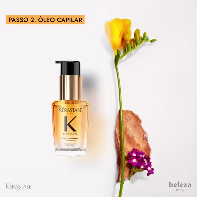 Não sei o CEPKit com shampoo e óleo capilar, para cabelos superprocessados e quimicamente danificados. Kérastase Résistance Elixir Ultime L'Huile Originale promove fios renovados e saudáveis, livres dos danos do dia a dia.