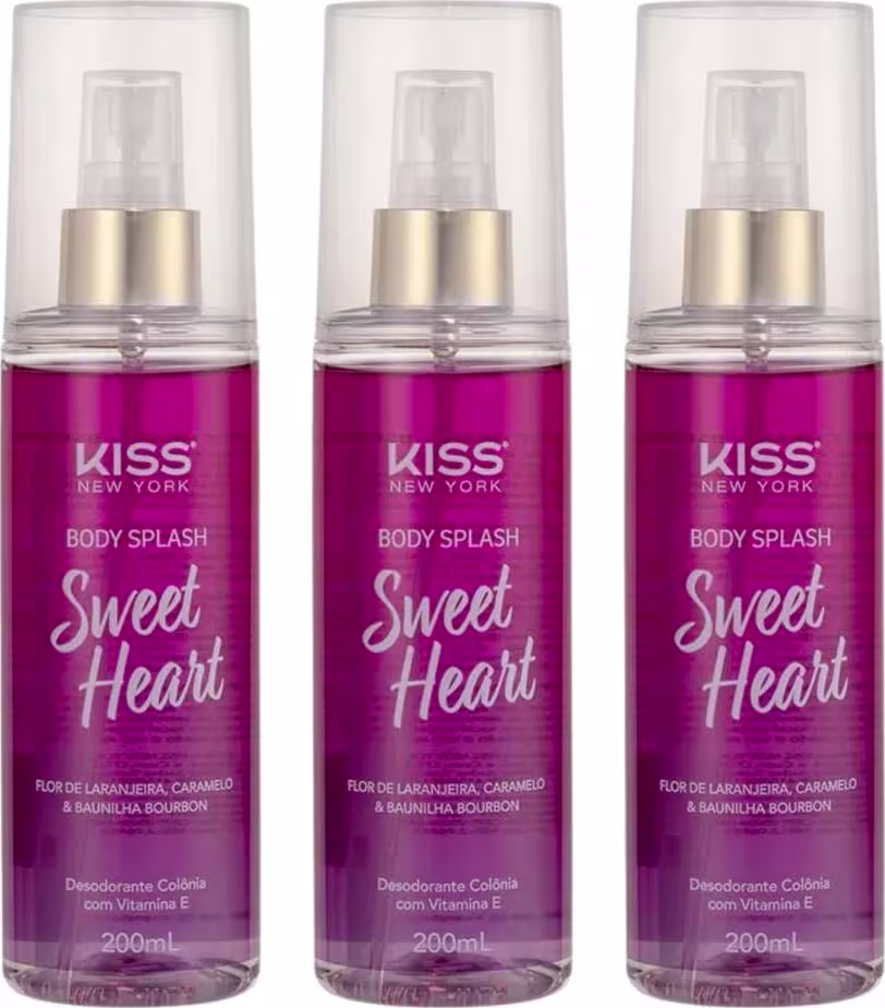 Kit de body splash. Kiss New York Sweet Heart Trio promove frescor, pele perfumada, além de ter ativos que hidratam a pele.