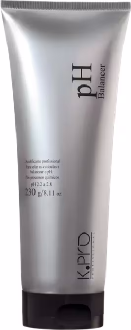 K.Pro Ph Balancer Acidificante - Tratamento 230g: Potencializador de tratamento e selador de cutículas para todos os tipos de cabelo. Restabelece o equilíbrio dos fios e sela as escamas. Assim, potencializa as hidratações e reconstruções, mantendo os nutrientes e outros ativos dentro das fibras capilares, para um efeito mais intenso.